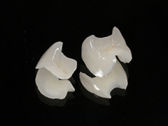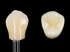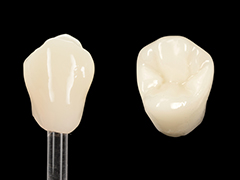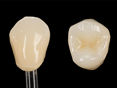 奥歯などの強い力がかかる部位に適した非常に高強度の素材です。細かい色の調整が難しく、他の素材より精密性は少し劣りますが、耐久性には優れています。