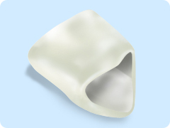 純粋なセラミックの素材です。プラスチック素材に比べて変色しないため、白い歯を保ち続けることができます。審美性、耐摩耗性、抗着色性に大変優れ、舌で触れても、とても滑らかで自然な感触の素材です。