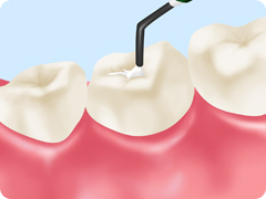 奥歯の溝は複雑な形状なので食べかすが詰まりやすくむし歯になりやすい部位です。そこをあらかじめレジン(歯科用プラスチック)でふさいでむし歯を予防します。