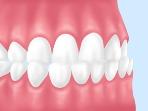 上の前歯が突出した状態です。上下のバランスが悪く、上のあごが大きすぎたり、下のあごが小さすぎたりすることが原因の場合もあります。