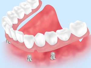 数本のインプラントを支えにして入れ歯を安定させる方法です。セラミックの被せもので1本ずつ補う場合に比べて、使用するインプラントの本数を減らせるため比較的費用を抑えられます。また、入れ歯がしっかり固定され、安定した噛み心地が得られます。