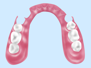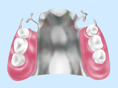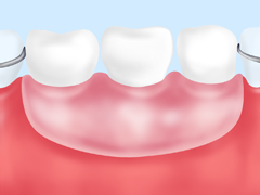 保険の部分入れ歯に見られる金属のバネ(クラスプ)がないタイプの入れ歯です。歯ぐき部分は自然なピンク色の特殊素材でつくられており、見た目が自然です。金属のバネがないため周囲の歯に負担がかかりません。