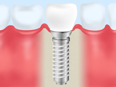 歯を失った部分のあごの骨にインプラント(人工歯根)を埋め込み、つくった土台のうえに人工歯を装着する治療法です。セラミック製の人工歯を使用することで、天然歯に近い自然な美しさと、本来の自分の歯のような噛み心地をより忠実に再現できます。失った歯を補う方法の中でも、機能性・審美性ともに優れているのが特長です。